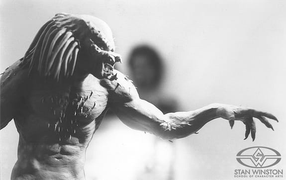 For Predator in 1987, Winston sketched monster ideas on a plane ride alongside Cameron. Cameron suggested he'd always wanted to see a creature with mandibles. That became part of the Predator's iconic look. Winston found further inspiration from a painting of a Rastafarian warrior in producer Joel Silver's office. His team worked around the clock, seven days a week for six weeks. Seven-foot-four-inch actor Kevin Peter Hall wore the suit with its fully animatronic face.